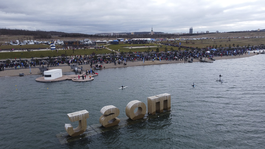 Otužilci se sešli jezera, které má dlouho oblázkovou a písčitou pláž. Množství lidí způsobilo dopravní komplikace, příjezd k jezeru usměrňovali městští policisté. Organizátoři měli na místě zajištěny dvě sanitky a záchranáře na břehu i ve vodě. Vzduch měl čtyři stupně Celsia, voda byla rovněž ledová, naměřeno bylo 3,46 stupně Celsia. Navíc foukal silný ledový vítr.