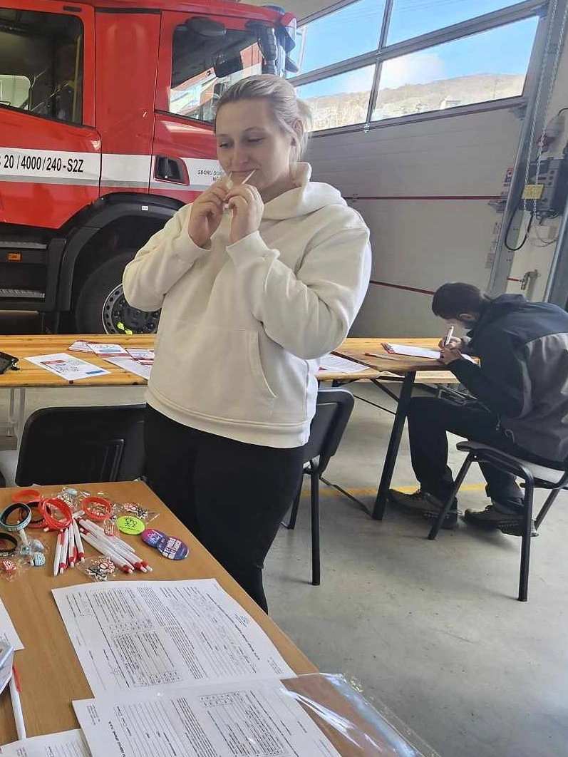 Při registraci stačí vyplnit formuláře a udělat si stěr z ústní dutiny. Nic náročného. Jeden z náborů se v Litvínově-Hamru uskutečnil v tamní hasičské zbrojnici. Foto: jip