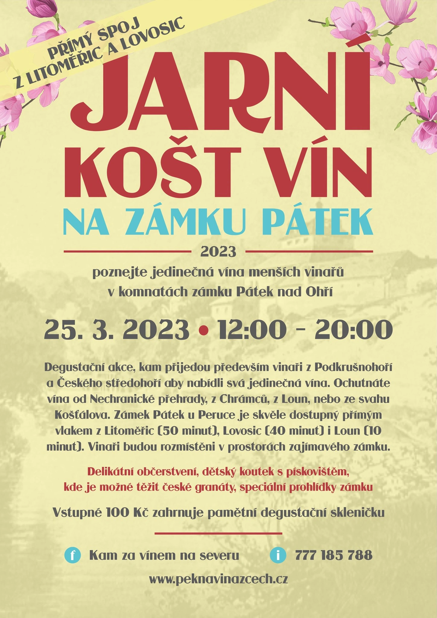 Lounsko – Hledáte ideální cíl pro příští sobotu? Zapomeňte na přeplněná nákupní centra a vyrazte tam, kde se historie snoubí s chutí jara. V sobotu 28. března se brány areálu zámku Pátek nad Ohří otevřou pro další ročník oblíbeného Jarního koštu vín.