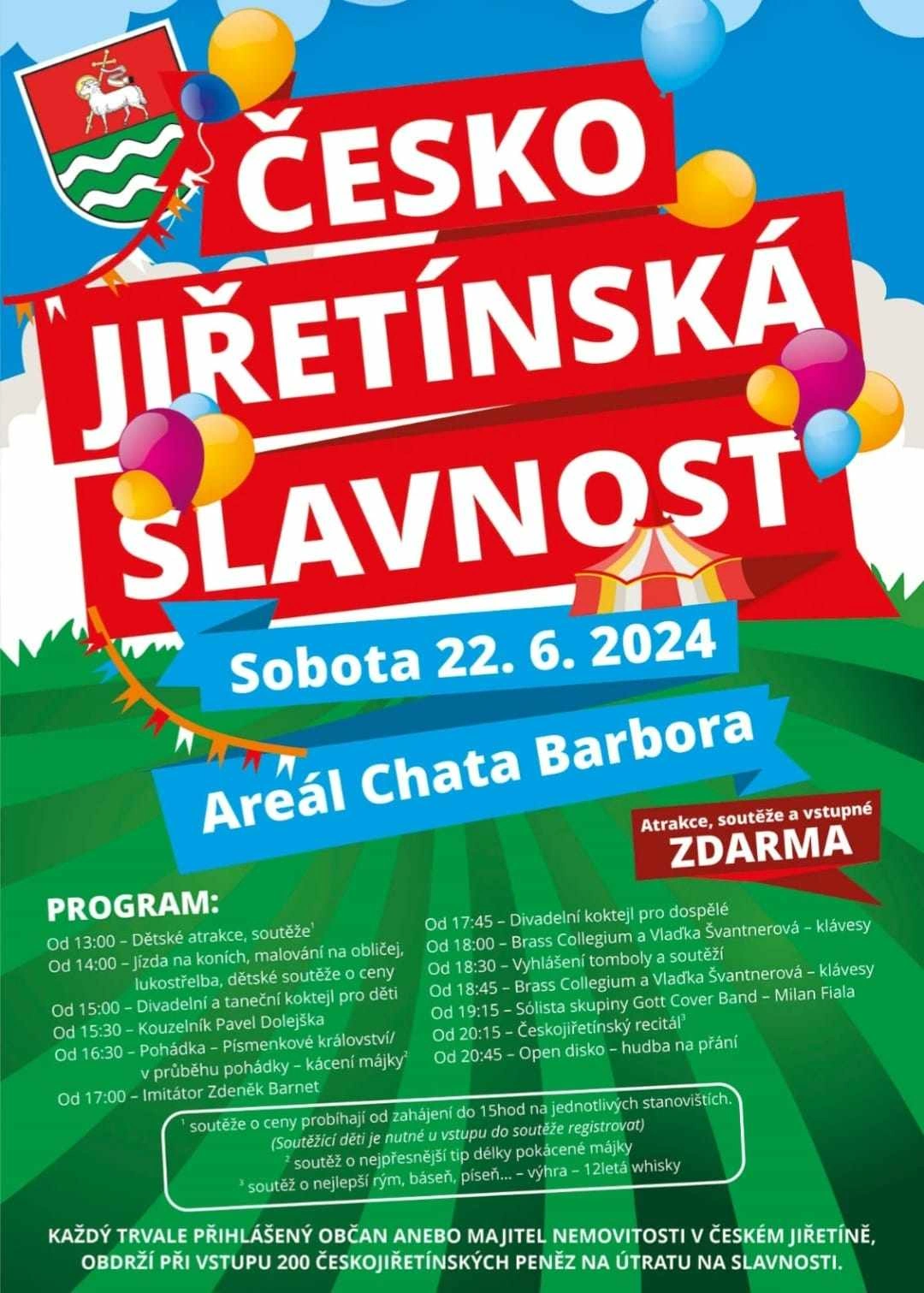 Do areálu chaty Barbora v Českém Jiřetíně lákají pořadatelé na program pro děti i dospělé, nechybí tradiční tombola. Zajímavostí je tipovací soutěž, kdy účastníci odhadují délku pokácené májky. Program začíná ve 13 hodin.