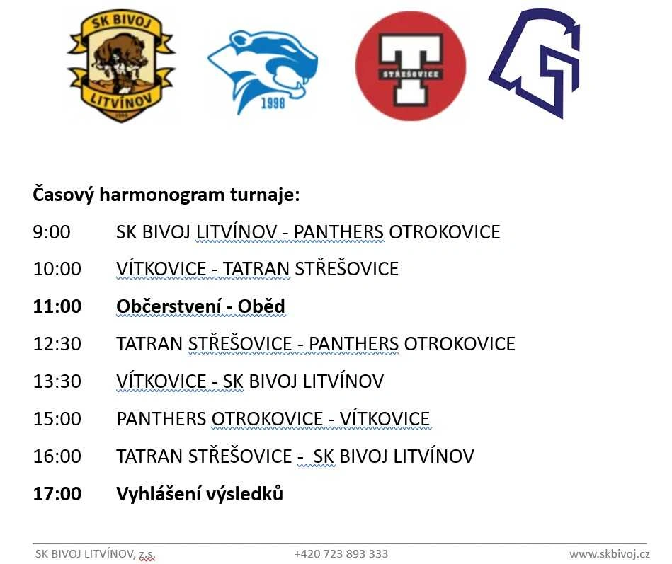 Na něm svůj um porovnají týmy Panthers Otrokovice, Tatran Střešovice a 1.SC Tempish Vítkovice. Společně s litvínovskými sportovci se tyto družstva řadí k nejlepším výběrům. „Jde o výběrový turnaj, kde chceme divákům představit opravdu pěkné výkony. Oslovili jsme velmi silné soupeře, výsledky by měly tedy být velmi vyrovnané a turnaj bude napínavý do samotného konce. Pro kluky je to test, jak dobře se dokázali připravit na novou sezónu," vysvětluje za pořadatelský klub Ruda Rác.