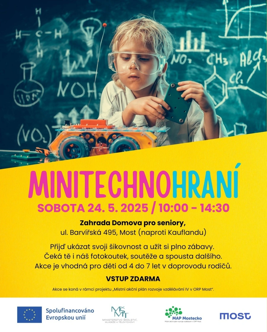 Most – Další ročník Minitechnohraní určené nejen pro nejmenší je tu, a to již tuto sobotu, od 10 hodin v zahradě Domova pro seniory v Barvířské ulici. Je určené všem, kdo chtějí v dětech už od útlého věku pěstovat a rozvíjet vztah k technice.