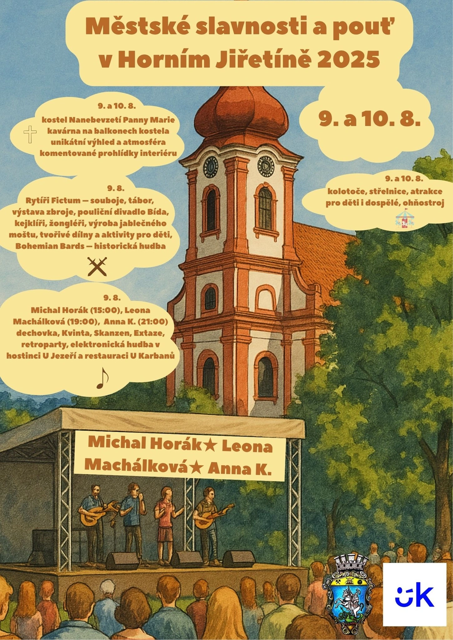 Horní Jiřetín – Horní Jiřetín ožije v sobotu 9. a neděli 10. srpna 2025 tradičními městskými slavnostmi a poutí, které slibují bohatý program pro celou rodinu. Čekají vás dva dny plné hudby, dobového koloritu, dobrého jídla i zážitků, na které budete dlouho vzpomínat.