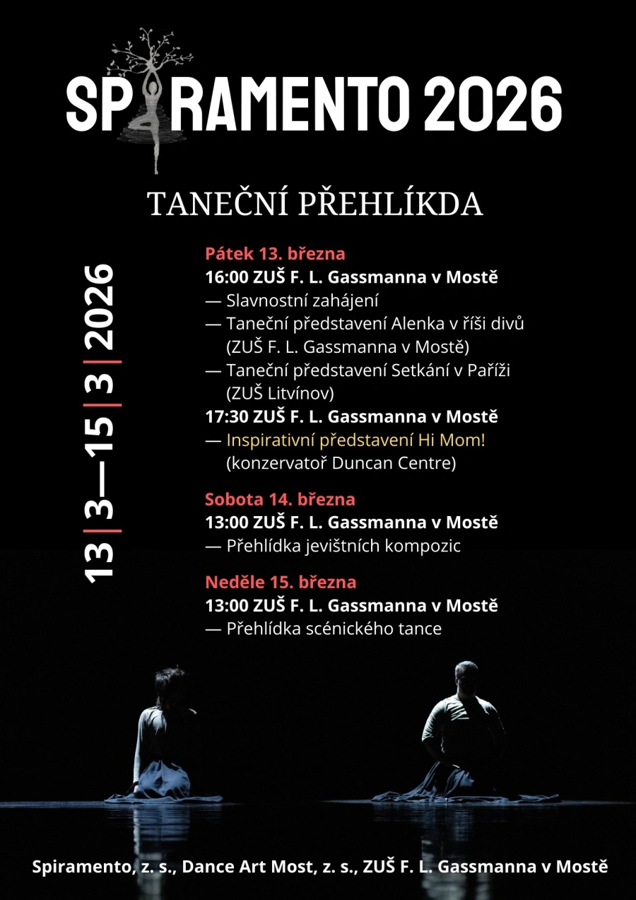Most – Ve dnech 13. až 15. března se Velký sál ZUŠ F. L. Gassmanna v Mostě stane centrem tanečního umění. Čtvrtý ročník přehlídky Spiramento letos hlásí rekordní zájem: na jevišti se během víkendu vystřídá 413 tanečníků z 12 uměleckých souborů.
