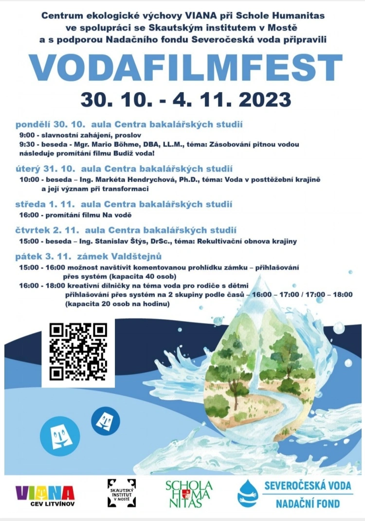 Slavnostní zahájení, po němž následuje beseda s Mariem Böhmem, mluvčím Severočeské vodárenské společnosti na téma Zásobování pitnou vodou, je naplánováno na pondělí 30. října v 9 hodin. Po besedě je v plánu promítání filmu Budiž voda!