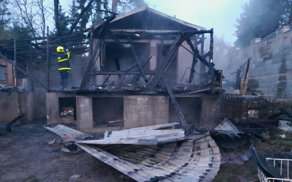 Požár byl nahlášen v noci na sobotu ve 3:59 hodin. Jedna chatka byla zasažena celá, druhá částečně.