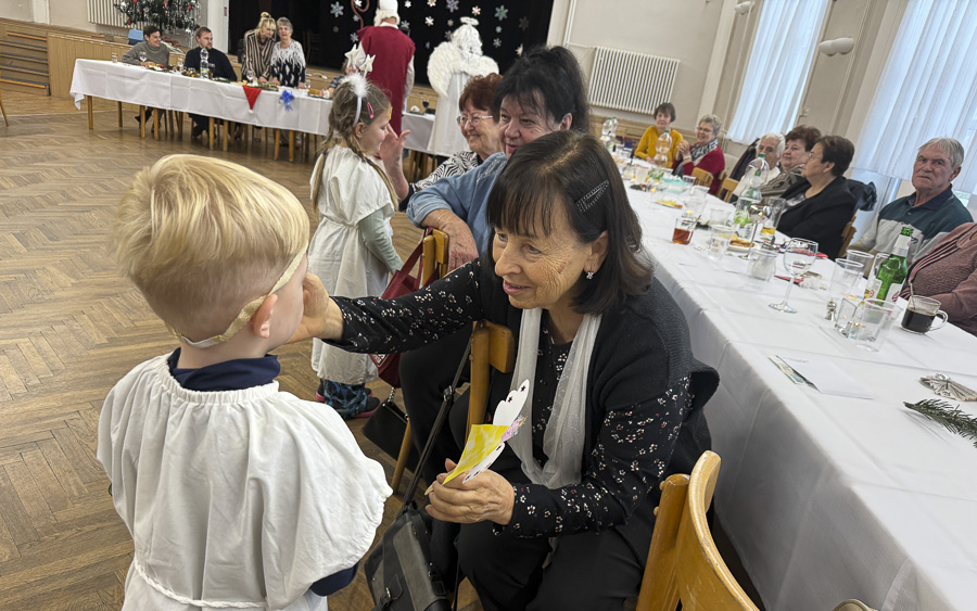 Děti si připravily pro členy Klubu seniorů Lom 1 nejen vystoupení, ale i dárečky. A na oplátku k nim přišel Mikuláš a anděl.