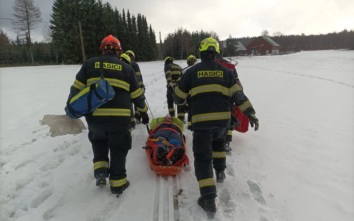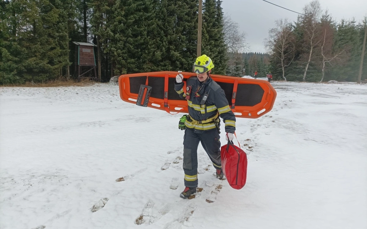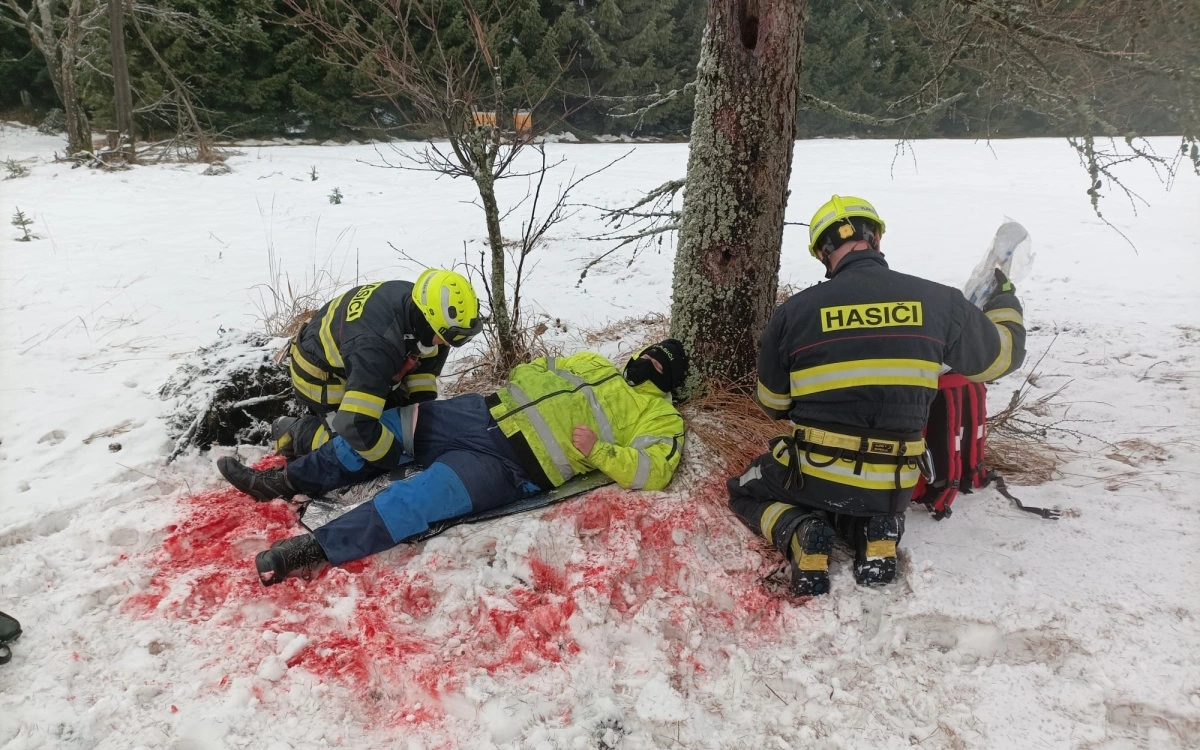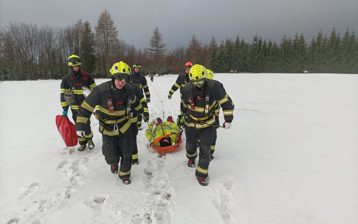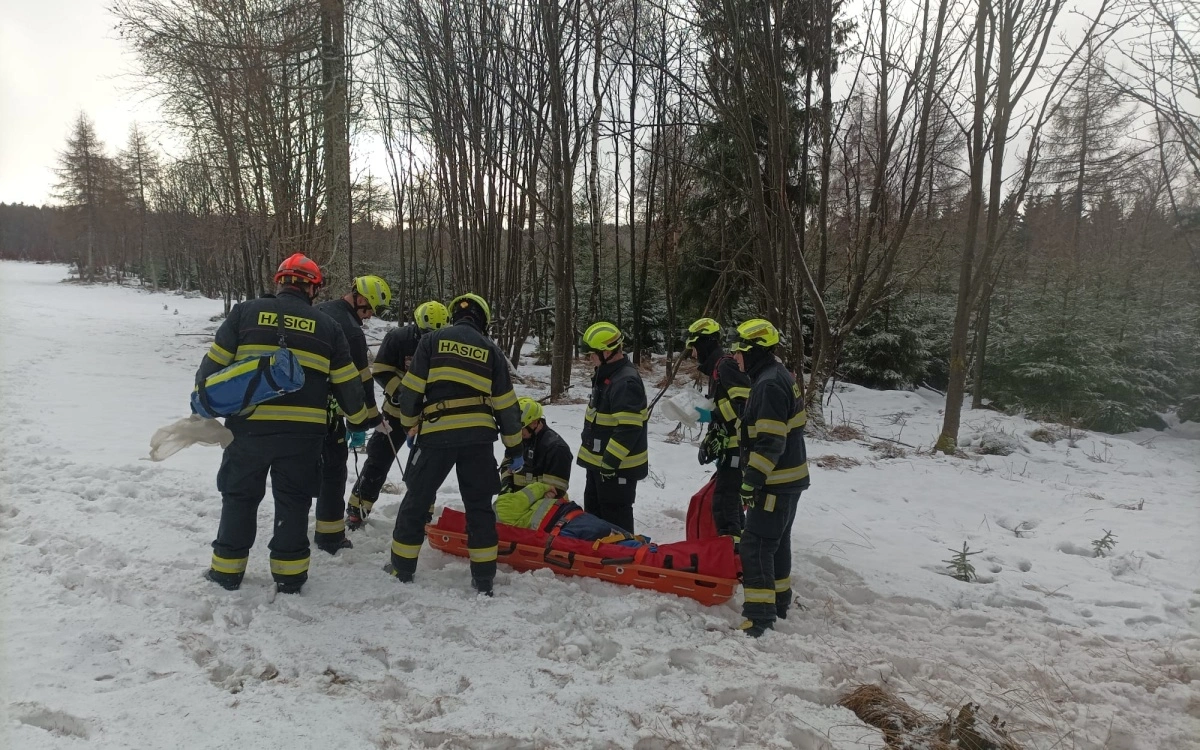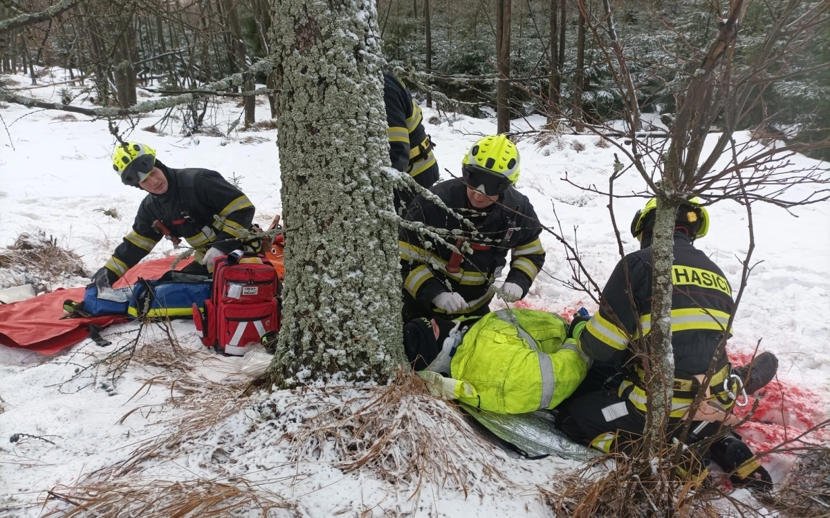 Krušné hory – V Krušných horách probíhá intenzivně těžba dřeva, a to i v zimních měsících. Členové profesionální jednotky hasičského sboru z Litvínova a také Jednotky sboru dobrovolných hasičů města Litvínova proto trénovali ve středu záchranu zraněného lesního dělníka, a to přímo z místa, kde k "neštěstí" došlo.