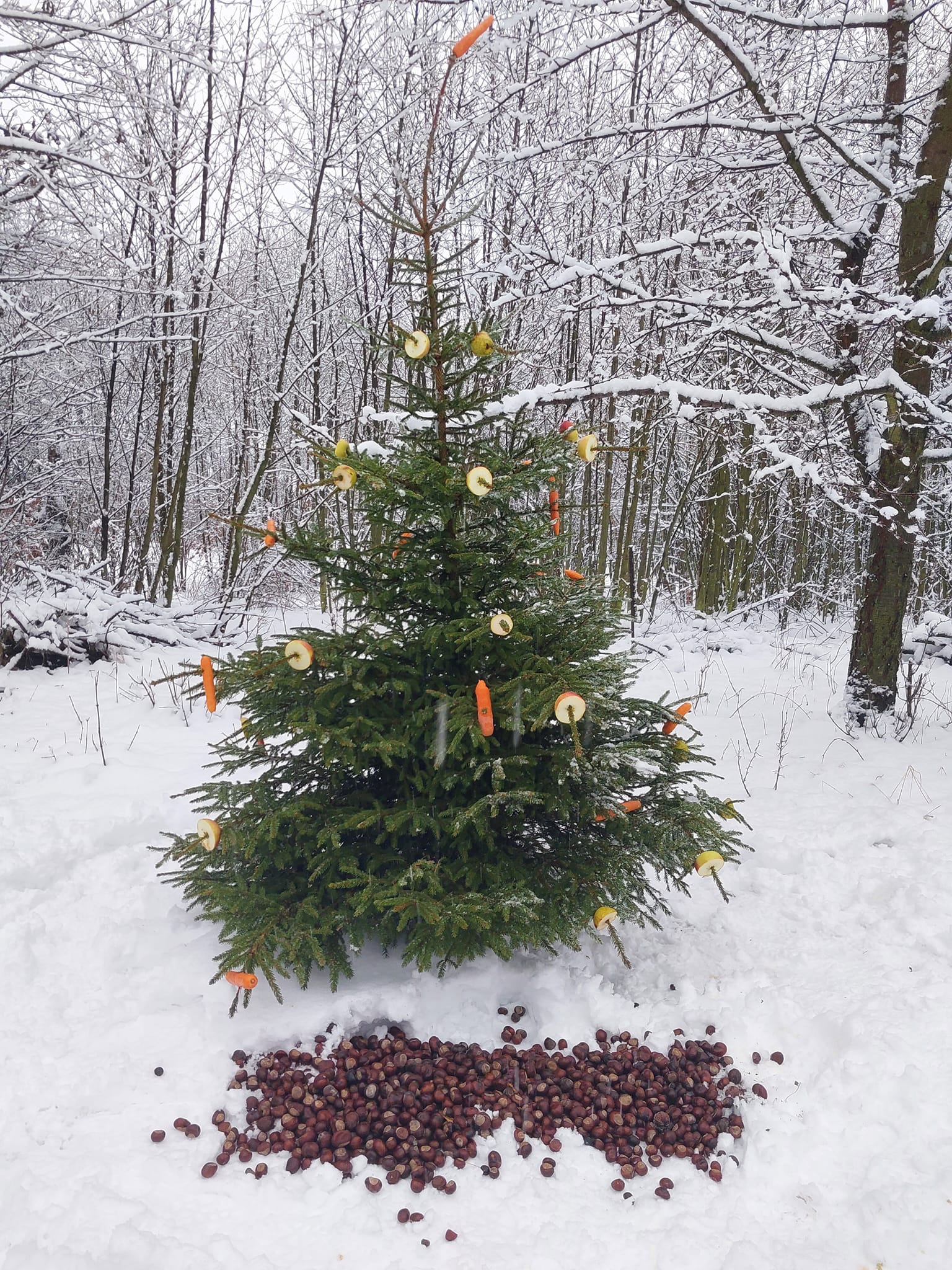 Díky tomuto počinu si nyní můžeme na sociálních sítích Lesní správy Litvínov užívat záběrů z bohaté hostiny: „Krom plnění krmelců se rozhodli v polesí v Háji u Duchcova ozdobit stromeček ovocem a zeleninou, aby měla lesní fauna zpestření svátečních dnů. O to více nás potěšilo, že jakmile ozdoby ze stromečku zmizely, byl ozdoben znovu, a to místními lidmi. Moc děkujeme, že jste s námi."