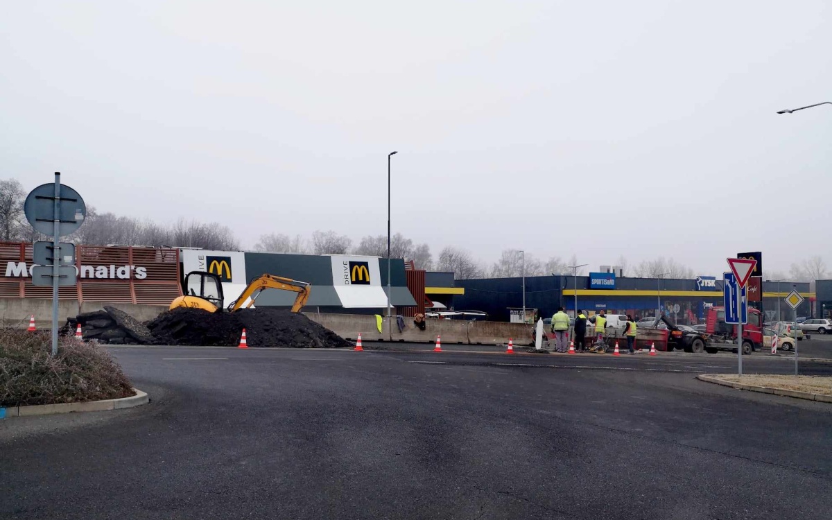 Litvínov – Zatímco milovníci rychlého občerstvení jásají, že McDonald´s už zdařile funguje, řidiči poukazují na tankodrom, kterým do obchodní zóny přijíždějí. Investorovi k tomu, aby dělníci definitivně opravili rozbitou příjezdovou komunikaci – silnici v ulici U Autodílen, nepřeje počasí. Přistoupil tedy k provizornímu řešení.