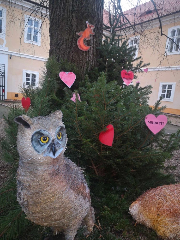 Litvínovští si už zvykli chodit na nádvoří zámku Valdštejnů. Tamní fotokoutek pod lípou se proměňuje k radosti dětí i dospělých. Konce lipových větví nyní "rozkvetly" růžovými srdíčky. Udělali jste si foto?