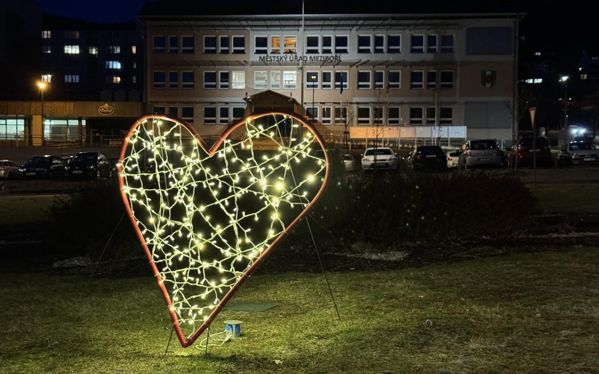 V Meziboří je kreativní místečko hned u vjezdu do města. Pro dnešní den se zde rozsvítilo velké srdce. To potěší nejen zamilované.
