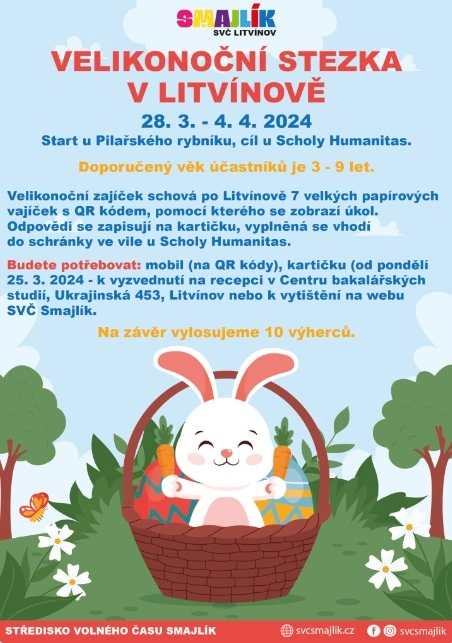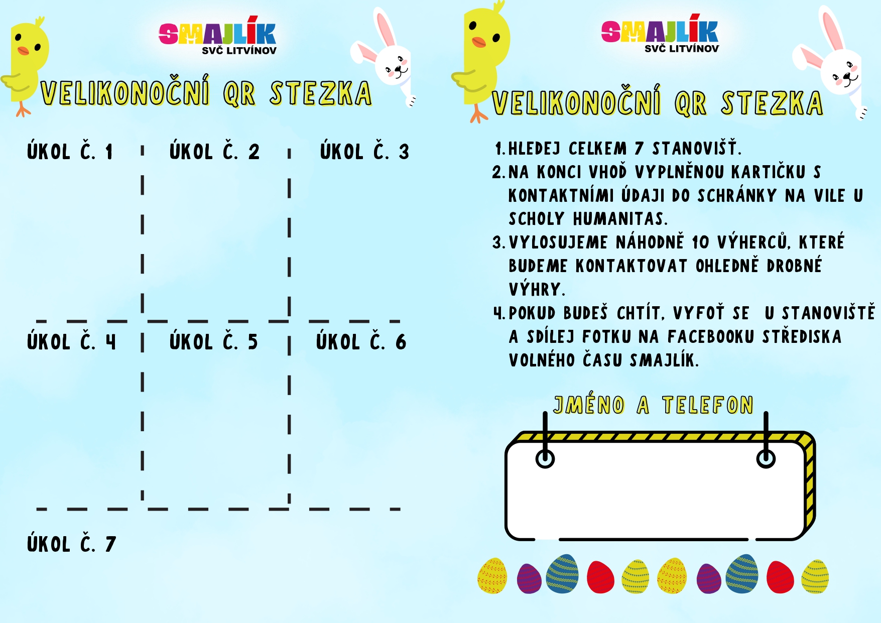 Litvínov – Ve čtvrtek 28. března mají děti první den velikonočních prázdnin. Jestli řešíte, jak je zabavit, vydejte se na Velikonoční stezku, kterou připravilo Středisko volného času Smajlík Litvínov. Velikonoční QR stezku můžete absolvovat kdykoliv, od 28. března do 4. dubna.