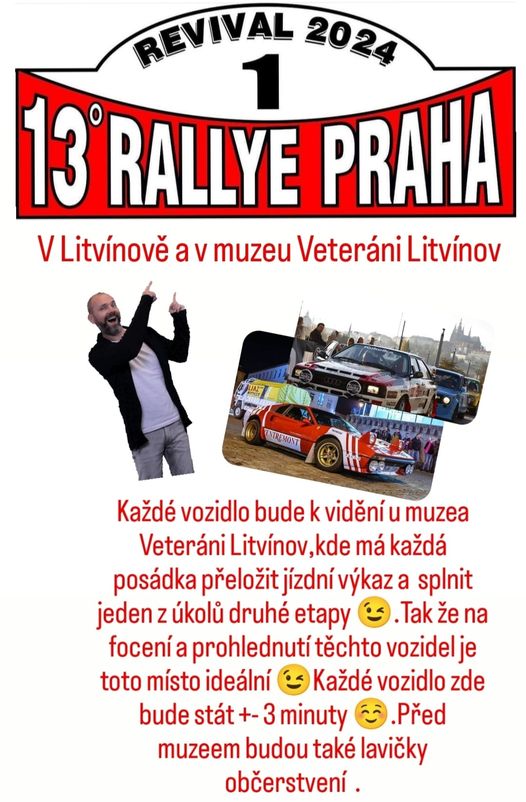 Tomáš Urban si nenechal ujít zahájení rallye v Praze. První etapa vede do Teplic. Sobotní etapa se zastávkou v Litvínově je nejdelší. Její součástí budou nejen jízdy na polygonu a zastávka u Muzea veteránů, ale i závod do vrchu z Janova na Křížatky. „V neděli bude cíl opět v Praze, ještě předtím budou závodníci absolvovat rallye v Chabařovicích," doplnil Tomáš Urban.