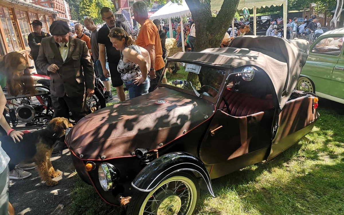 Pořadatelé akce z Muzea Veteráni Litvínov vždy na konci setkání předají ocenění vybranému účastníku. Tento oceněný řidič přijel v úžasném velorexu. Zdroj: Tomáš Urban