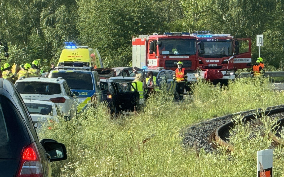 Hasiči musí řidiče z jednoho vozu vyprostit. Foto: Oldřich Hájek
