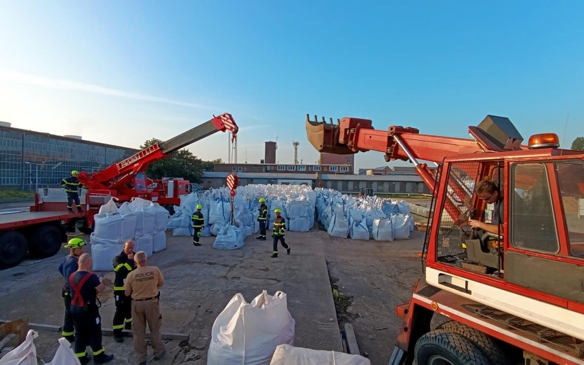 Pyrotechnikům pomáhají na místě kolegové z hasičského záchranného sboru - konkrétně HZS Ústeckého kraje, Záchranný útvar HZS ČR z dislokací Hlučín, Jihlava, Zbiroh, HZS podniku Unipetrol. V bezpečném prostoru plní pytle s pískem a připravují je k odvozu. Poskytli také k manipulaci a pohybu v nebezpečném prostoru potřebnou techniku. Celkově hasiči přivezli 11 speciálních strojů, kterými jsou: