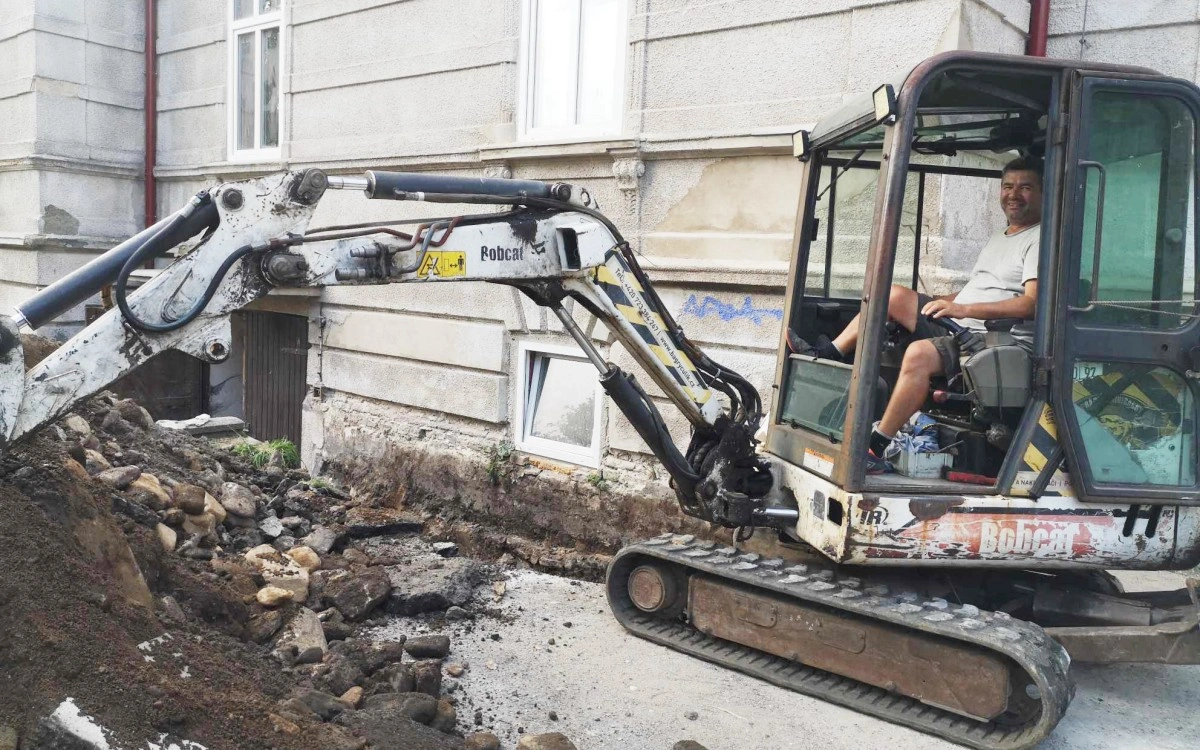 Co v takové chvíli dělat, to ví moc dobře. „Každý bagrista musí mít strojnický průkaz, který získá na kurzu strojníků. A při němž vás s tím, co v takové situaci dělat obeznámí.," dodal Miroslav Čulík. U vily v Soukenické ulici je jeho úkolem sanovat základy budovy.