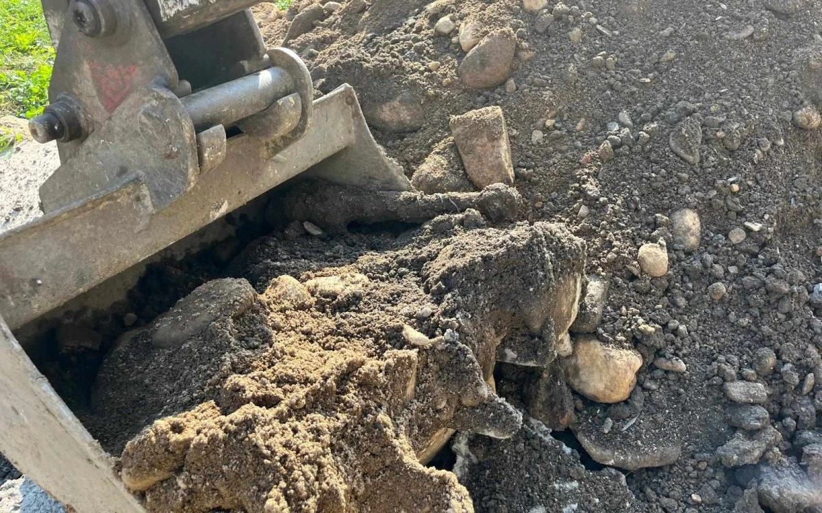 Miroslav Čulík při výkopových pracích objevil podezřelý předmět. Policisté situaci nepodcenili, protože skutečně připomínal nástražný výbušný systém, a přivolali pyrotechnika. Foto: jip