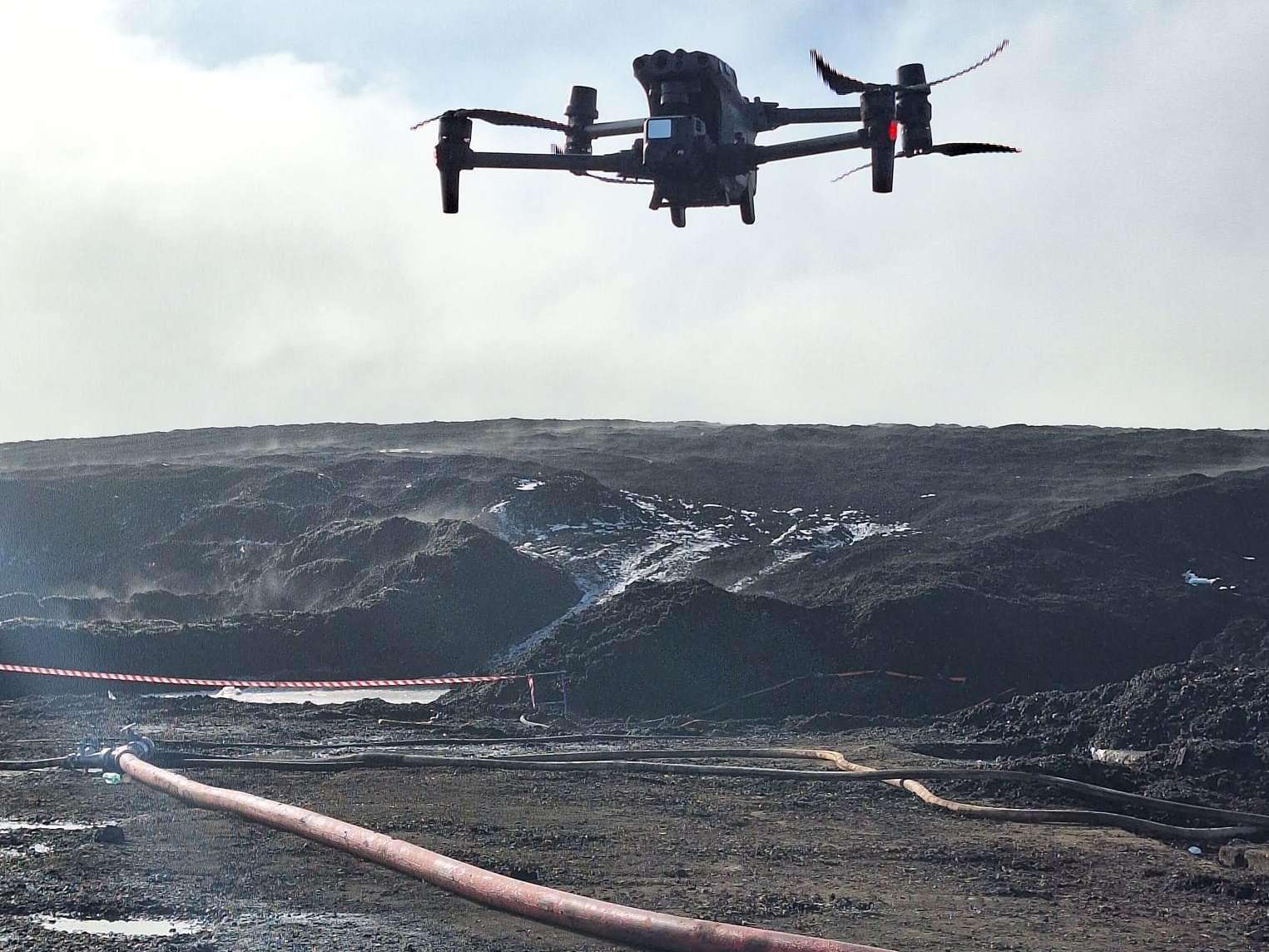 Požářiště kontrolují hasiči i pomocí dronů. Foto: HZS Ústeckého kraje