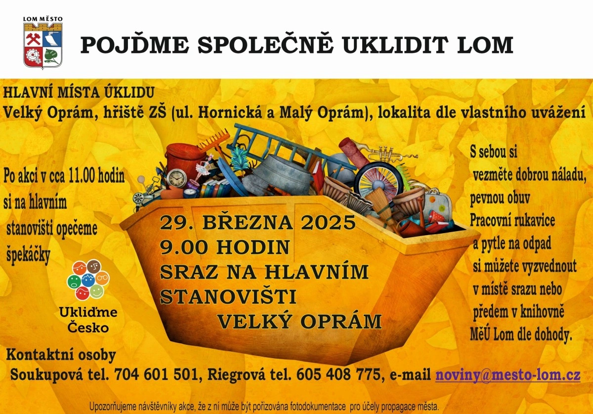 Litvínov, Lom – Jarní počasí opět láká k procházkám do přírody, přičemž nikdo se nechce kochat výhledem na bordel, ale krásnou krajinu. I proto se lidé v obcích, přátelé i různé spolky svolávají k jarnímu úklidu. Město Lom už má pevně daný termín – sobotu 29. března.