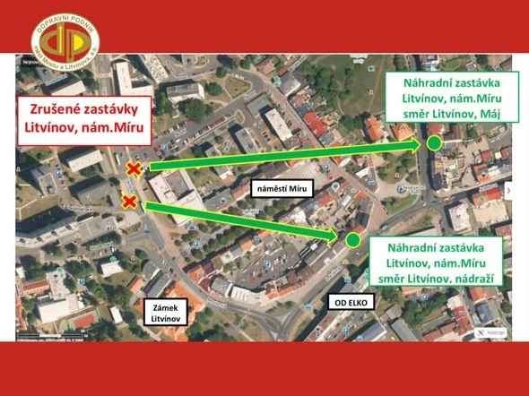 „Od 5. května 2025 od 10:00 h do odvolání budou autobusové linky č. 13, 14, 15, 27, 60, vzhledem k této uzavírce, vedeny ze směru od Litvínova, nádraží po objízdné trase z ul. Mostecké do ul. 9. května, ul. Smetanova, ul. Ruská do ul. Valdštejnské a dále již po standardní trase do Litvínova, Máj. Zpět po stejné trase," informuje DOPRAVNÍ PODNIK měst Mostu a Litvínova s tím, že po celou dobu uzavírky bude zrušena zastávka Litvínov, náměstí Míru v ul. Valdštejnská pro linky č. 13, 14, 15, 27, 60 (v obou směrech).