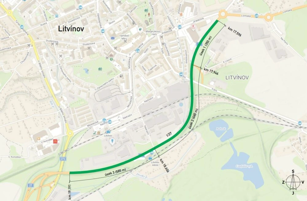 Litvínov – V úterý 22. července zahájí Ředitelství silnic a dálnic Ústeckého kraje opravu na silnici I/27 u Litvínova. Práce jsou rozděleny do tří etap. V první etapě budou muset řidiči ve směru na Most jezdit po objízdné trase přes ulici S. K. Neumanna, Podkrušnohorská a dále přes ulici U Bílého sloupu.