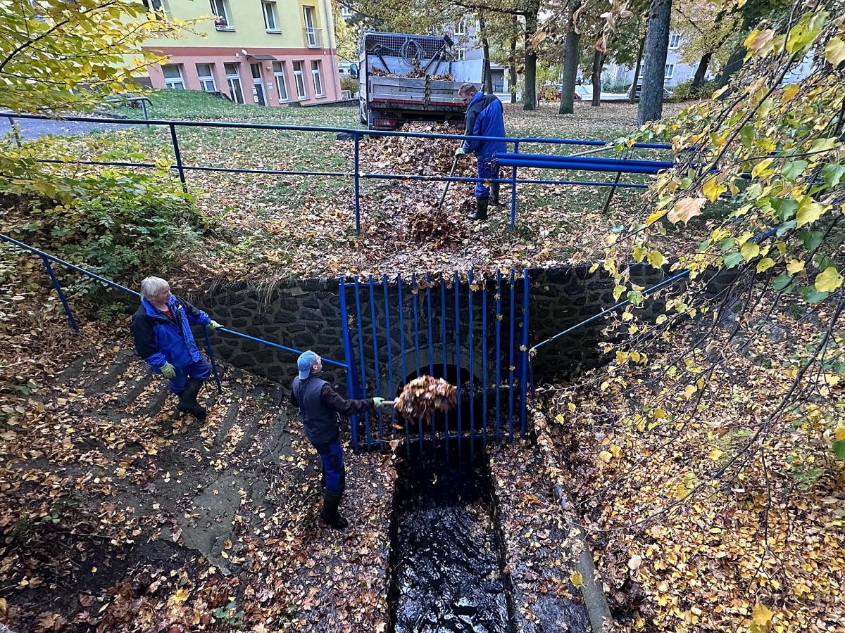 Litvínov – Litvínovem protéká hned několik potoků, jejich koryta vedou částečně i lesy. Nyní na podzim do nich padá spousta listí, které koryto ucpává. Aby se voda nevylila, musí je vodohospodáři pravidelně čisti.