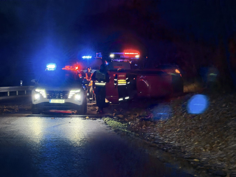 Meziboří, Litvínov - V sobotu 22. listopadu krátce před šestou hodinou večer se na silnici mezi Litvínovem a Mezibořím stala dopravní nehoda, při které osobní auto skončilo převrácené na boku mimo silnici.
