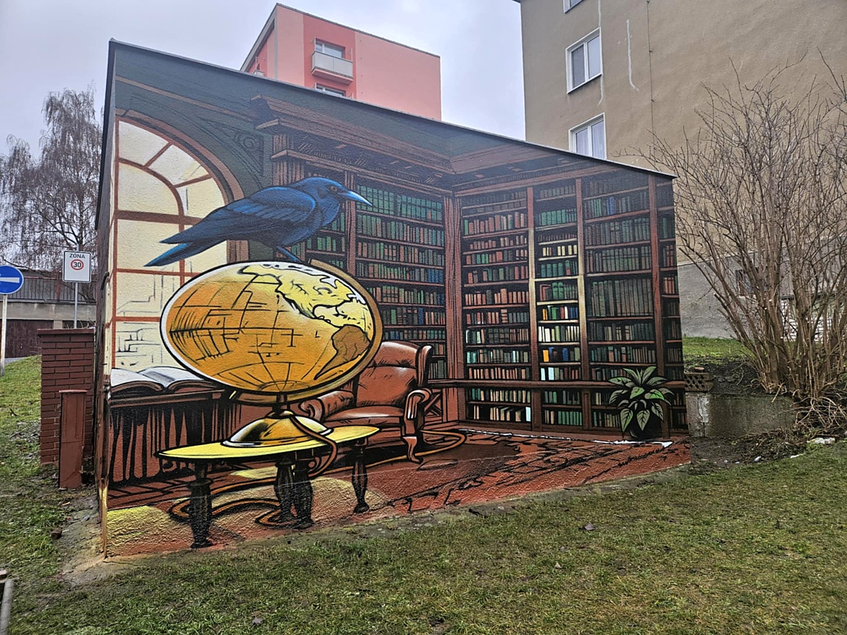 Litvínov – Jdete po Soukenické ulici v Litvínově a najednou máte pocit, že vidíte skrz zeď. Místo oprýskané technické budovy se před vámi otevírá pohled do útulné místnosti plné knih. Nejde o kouzlo, ale o novou vizáž místní trafostanice, která se proměnila v umělecké dílo. A místo nebylo vybráno náhodně – „falešná“ knihovna totiž stojí přímo naproti té skutečné, Městské knihovně Litvínov.