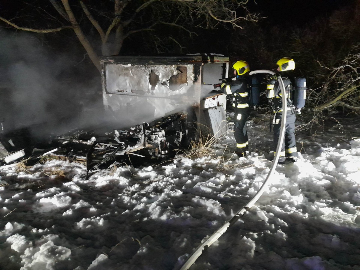 Hlášení o požáru přijalo operační středisko hasičů v noci, přičemž do akce bylo okamžitě vysláno pět jednotek. Po příjezdu na místo hasiči zjistili, že oheň zcela zachvátil dva vedle sebe stojící obytné přívěsy.