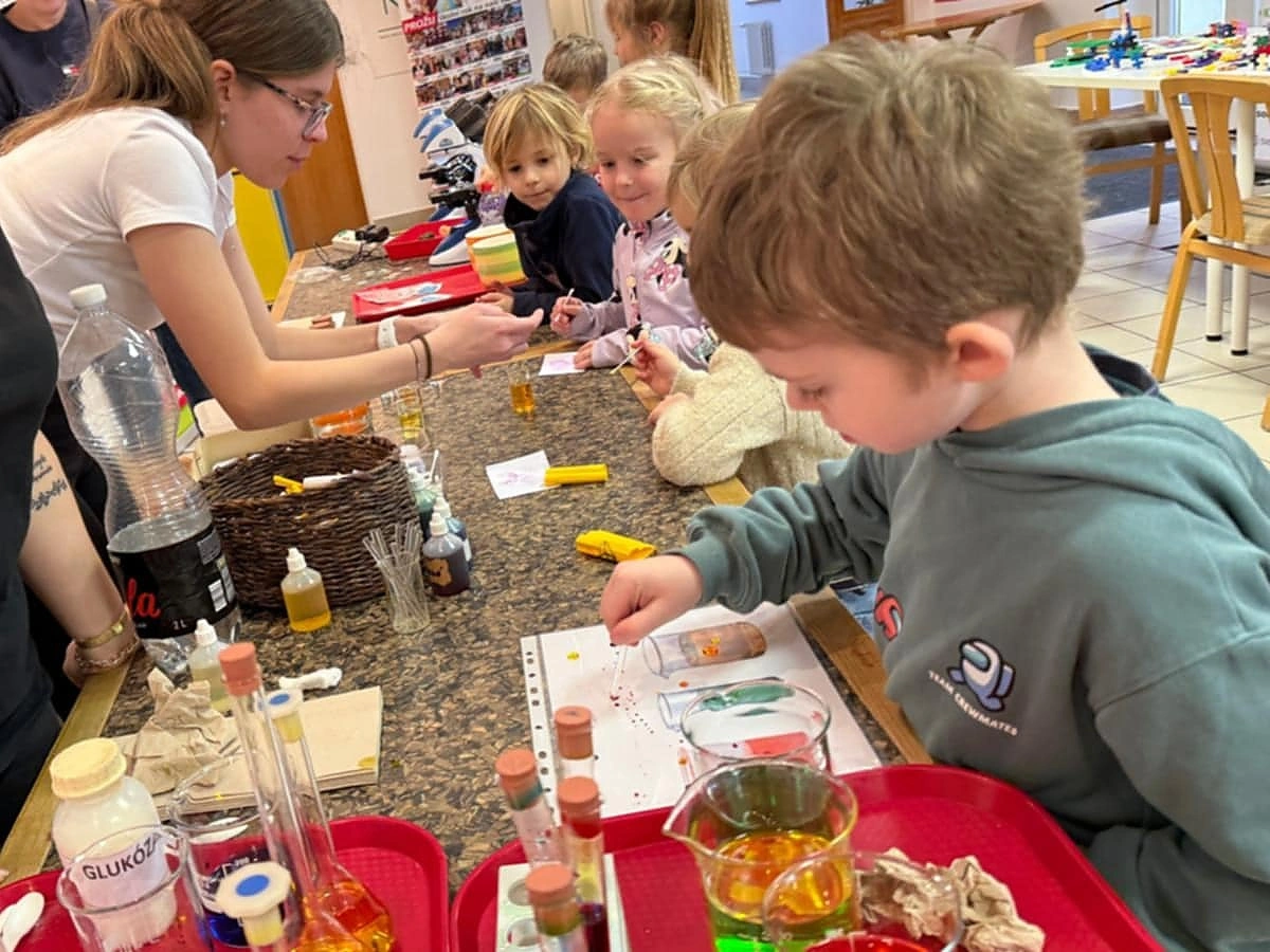 Kromě desítek stanovišť s montessori pomůckami, dřevěnými hračkami a edukativními hrami ze Zlína nabízí litvínovský festival i něco navíc. Do akce se aktivně zapojili studenti Scholy Humanitas, kteří pro návštěvníky připravili zábavné fyzikální a chemické pokusy, či možnost prohlédnout si pod mikroskopem detaily světa, které jsou pouhým okem neviditelné.