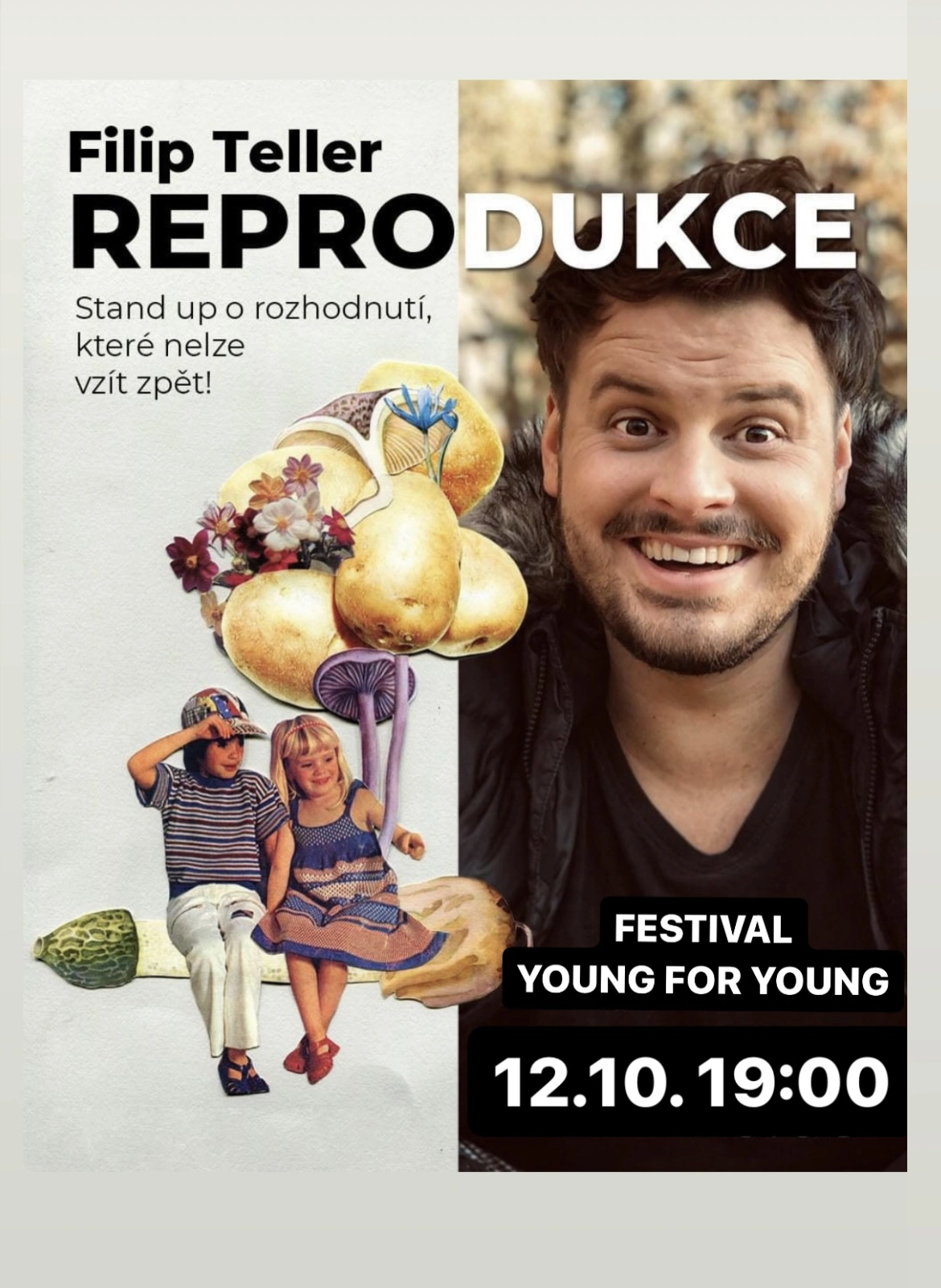Čtvrtek 12. října nabídne stand up Reprodukce v podání komika, herce a moderátora Filipa Tellera. Autorský stand up o dětech, rodičích, výchově, společnosti a rozhodnutí, které nelze vzít zpět!