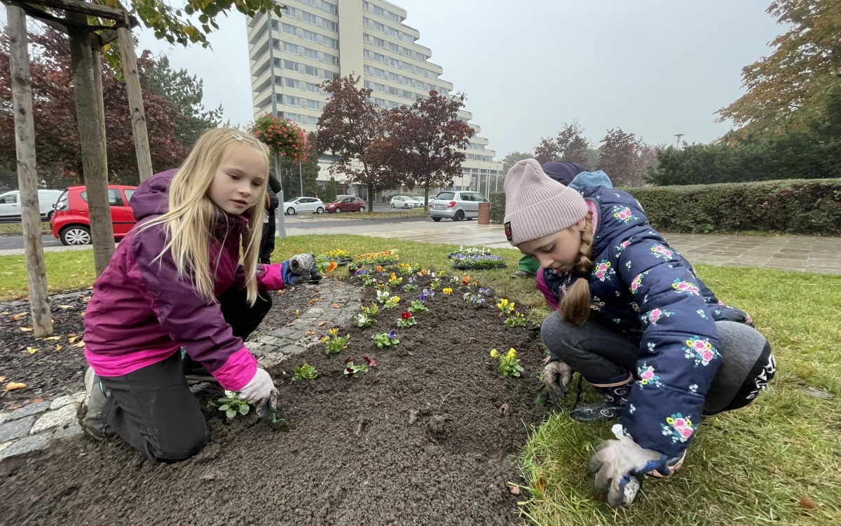 Most – U hotelu Cascade se v pátek dopoledne rozzářily květinové truhlíky novými barvami. Kolik námahy stojí za vytvořením takové krásy si díky environmentálnímu projektu Most k přírodě vyzkoušeli malí školáci.