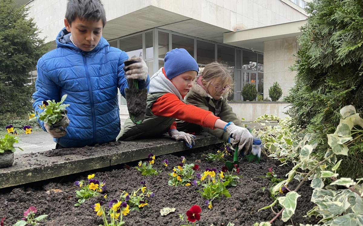 Třeťáci z 15. základní školy v Mostě dnes vysázeli macešky v centru města. U hotelu Cascade osázeli truhlíky a u divadla dva připravené záhony. Technické služby města Mostu, a. s., si pro ně připravily 500 kusů macešek.