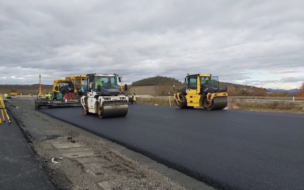 Chlumčany - Na stavbě dálnice D7 u Chlumčan aktuálně pokládá Ředitelství silnic a dálnic (ŘSD) asfaltové vrstvy, montuje svodidla, provádí ohumusování, realizuje kanalizaci a instaluje oplocení.