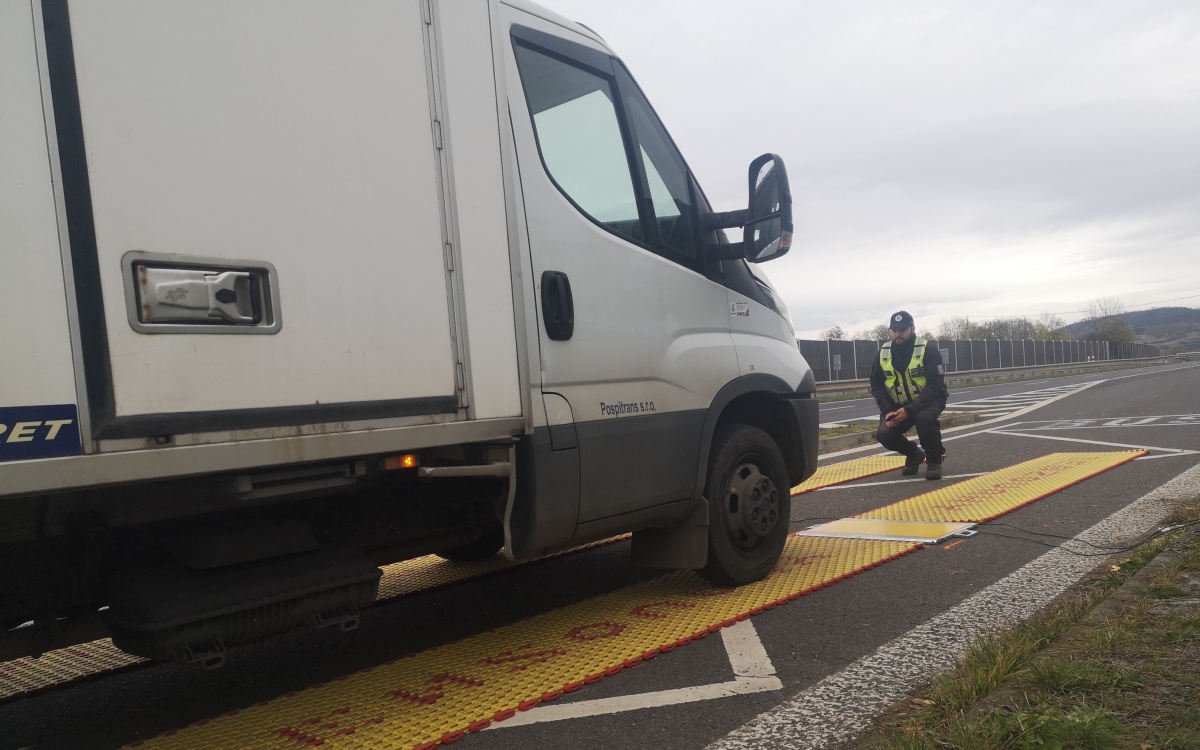 Jak samotné vážení probíhá? „Používáme zde tzv. nízkorychlostní vážení. Policista pokyne řidiči, aby najel pomalu na váhu nejprve přední nápravou. Kola zajistíme a vůz odbrzdí. Takto se postupně zváží všechny nápravy. Dle VIN kódu a rozměrů vozu počítač následně vyhodnotí, zda je vše v pořádku, nebo naopak,“ vysvětluje Vágner. Od váhy vedou kabely do policejní dodávky, která je vybavena jako malá kancelář. Policisté mají k dispozici dvě pracovní místa, počítače, obrazovku, na níž mohou řidiči kontrolovaného vozu ukazovat dotyčnému potřebné údaje. Nechybí ani tiskárna.
