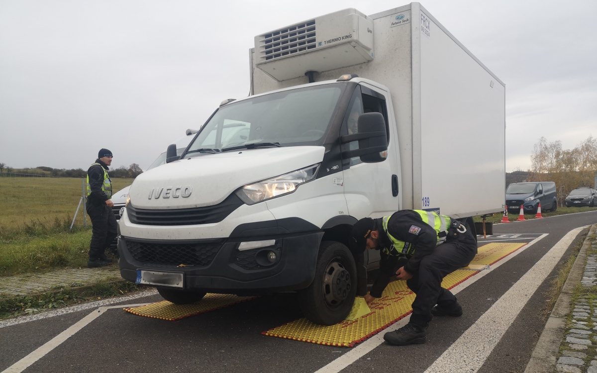 První vůz, který policisté zastaví, má polskou SPZ. Policisté nejprve zkontrolují všechny dokumenty a doklady, provedou prohlídku technického stavu a nechají si ukázat nákladní prostor. Protože je zaplněn nákladem, navigují řidiče na váhu. „Pokud by byl nákladový prostor téměř prázdný, nebudeme ho na váhy zbytečně posílat,“ vysvětluje dopravní policista. Vážení proběhlo v pořádku, polský řidič tak po pár minutách odjel.