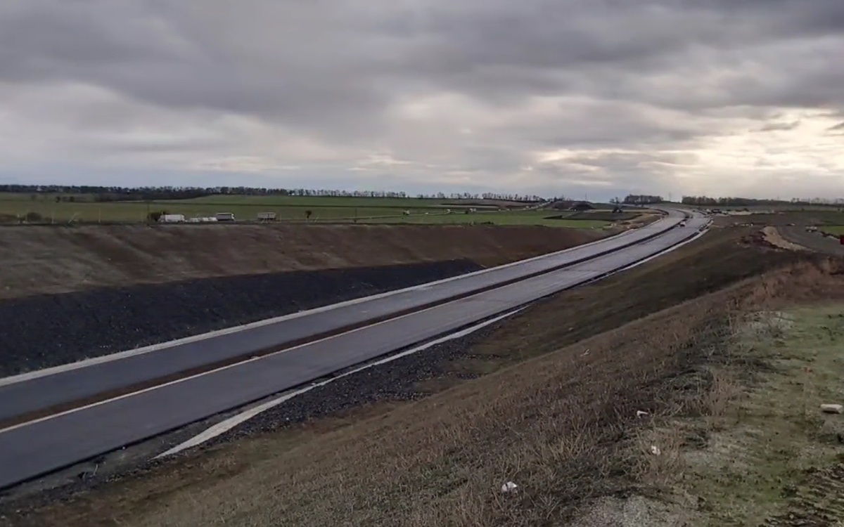 „Na stavbě dálnice D7 u Chlumčan jsme zhotovili zářez v hloubce 7,5 m a násyp ve výšce 8 m – oba v délce 1 km. Nyní pokládáme asfaltové vrstvy, montujeme svodidla a provádíme retenční nádrže. Zprovoznění v částečném profilu plánujeme v prosinci," uvádí ředitelství silnic a dálnic na sociálních sítích a přikládá video zachycující průběh aktuální stavební činnosti.
