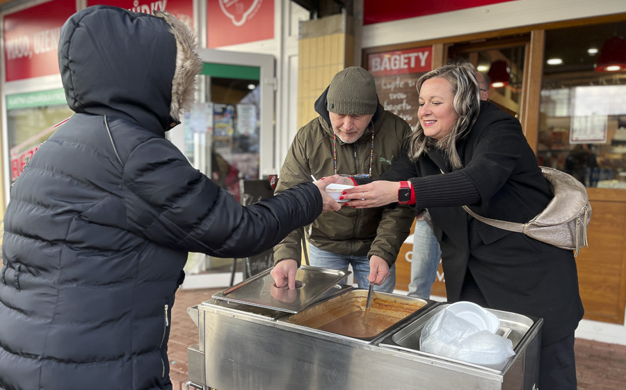 Poctivou gulášovku připravili zaměstnanci místní společnosti Bilbo Šmak. "Uvařili jsme čtyři sta porcí, tak doufáme, že lidi přijdou a že všechny vydáme," uvedl jednatel společnosti Stanislav Woznica. Z akce by se měla stát tradice. "A já bych chtěla moc poděkovat za to, že tahle akce v Mostě je uspořádaná," sdělila náměstkyně primátora města Mostu Markéta Stará, která při rozlévání polévky potřebným lidem pomáhala.