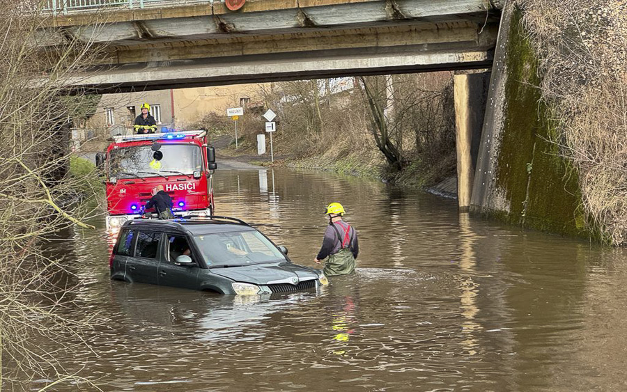 V místě, kde se slévá řeka Bílina a potok Bystřice, se vylila voda a zatopila silnici. Neprojel tam řidič škodovky, zasahovat museli hasiči.