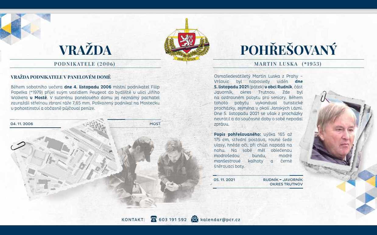 „Za jakékoliv informace k případům z kalendáře budeme rádi. Pro tento účel jsme zřídili e-mailovou schránku: