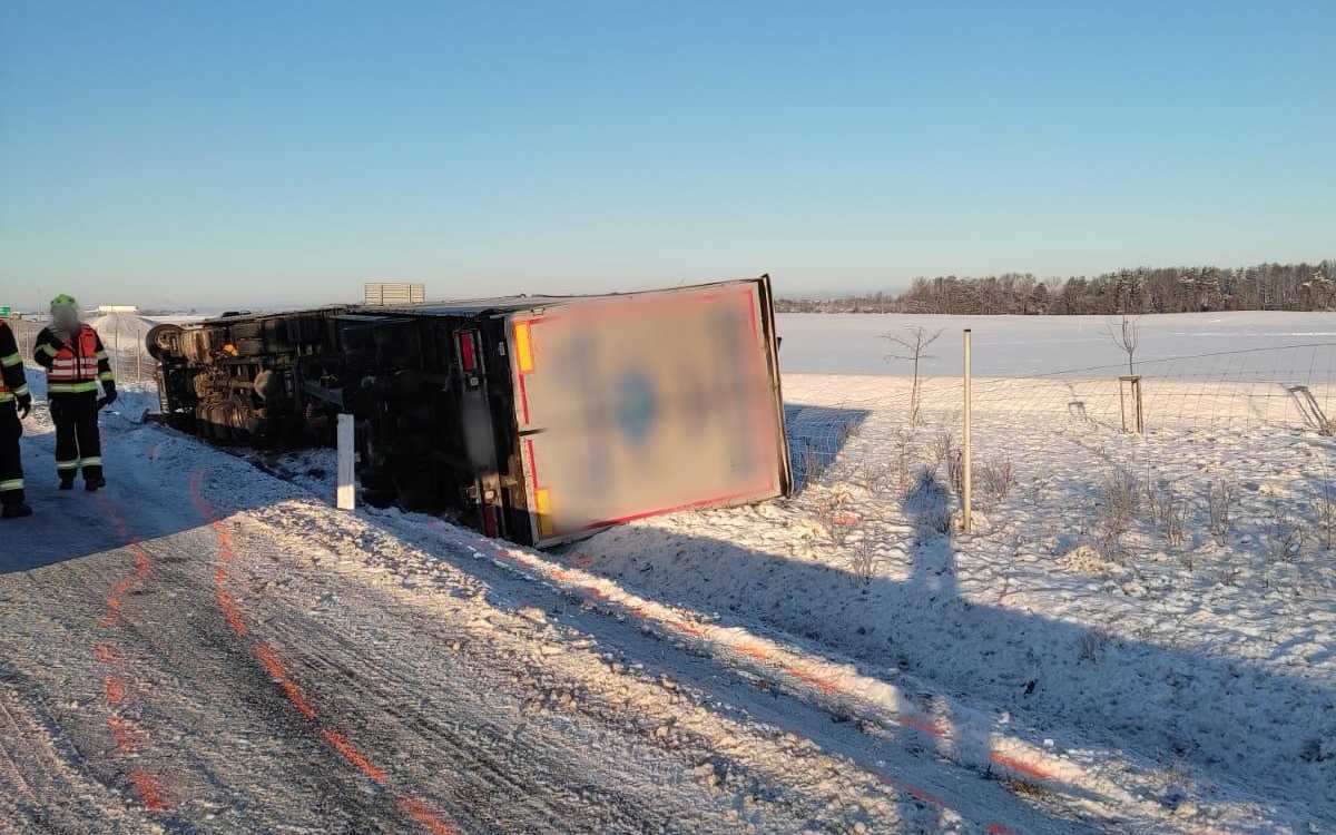 Lounsko – I pátek, tentokrát po 8 hodině ráno na dálnici D7 havaroval na 56.4 km ve směru Praha - Chomutov kamion. K obdobné nehodě došlo i v noci na čtvrtek, kdy se musel celý náklad z havarovaného kamionu přeskládat do jiného.