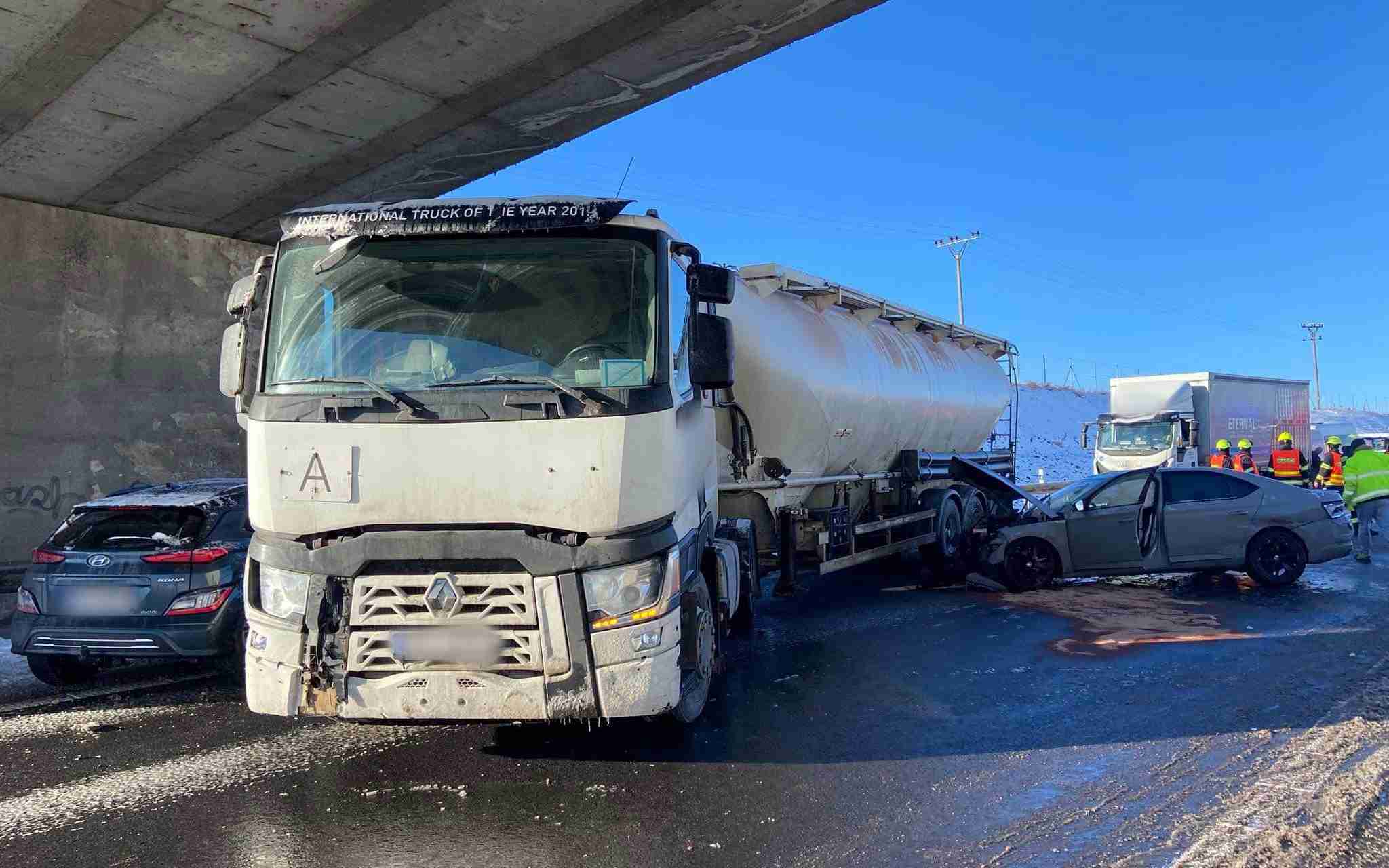 Lounsko – Na dálnici D7 - 36,5 km ve směru na Prahu v úrovni Panenského Týnce došlo krátce po desáté hodině k dopravní nehodě 2 nákladních automobilů a dvou osobních vozidel.