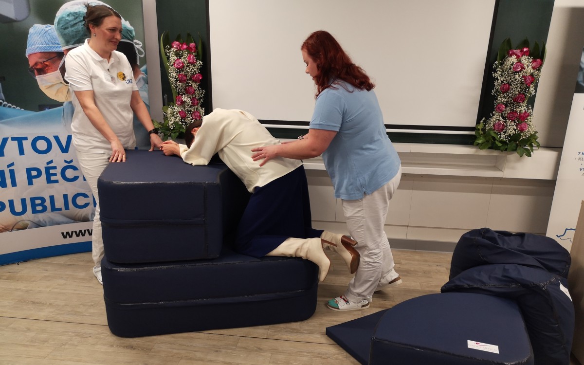 V Centru porodní asistence i nafotili manuál, jak je možné gauč používat. Foto: Jitka Pavlíková