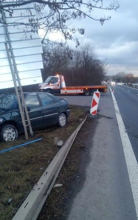 Podle informací jednoho z účastníků nehody nedal bulharský kamion přednost osobnímu vozu. Jeho řidič, aby zabránil srážce, strhl řízení a posléze narazil do značky vedle silnice.