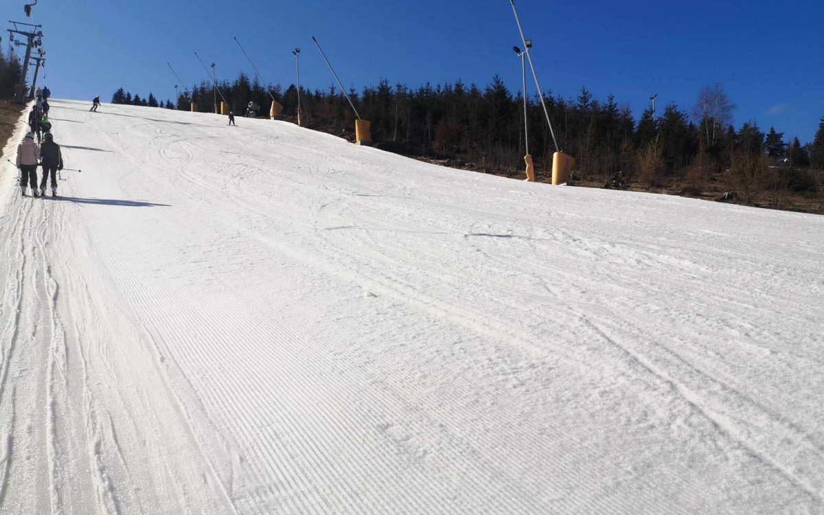 Lyžování je cenově velice příznivé, stav sjezdovek je přes převládající vysoké teploty naprosto perfektní. Jedinou výjimkou je dětský vlek, který je od pondělí bez sněhu. Nemusíte se ale bát, po delší trase sjezdovky zvládají jízdu i začátečníci. Lyžuje se i večer – a pozor, tady rolba vyjíždí na úpravu svahu i před každým večerním lyžováním. Na sobotu 9. března se navíc chystá tradiční lyžování v maskách. Kdo přijede v převleku, lyžuje zdarma.
