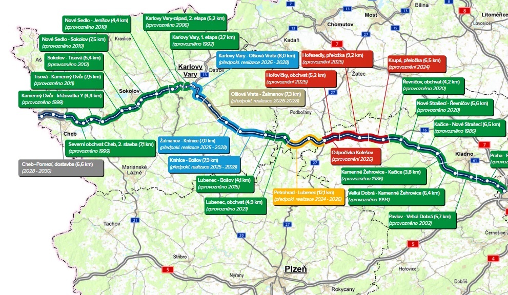 „Prováděli jsme zemní práce, budovali silniční násypy, upravovali silniční pláně a zakládali mosty. Předpokládaný termín zprovoznění je v listopadu 2025," uvádí ŘSD.
