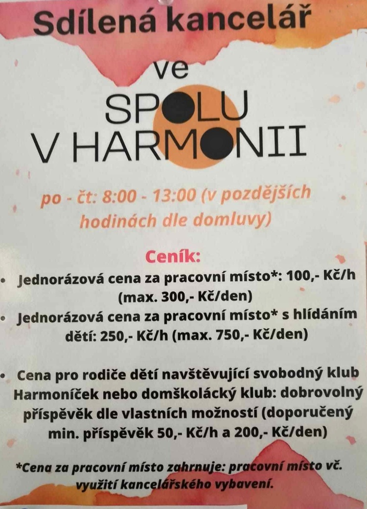 Rodiče, kteří s dětmi do spolku dochází, mají zvýhodněnou cenu za užití kanceláře. Pokud přijde zákazník "zvenčí", hradí 100 korun za hodinu, ale max. 300 korun za den. Pokud potřebuje pohlídat dítko, cena je 250 resp. 750 korun za den.