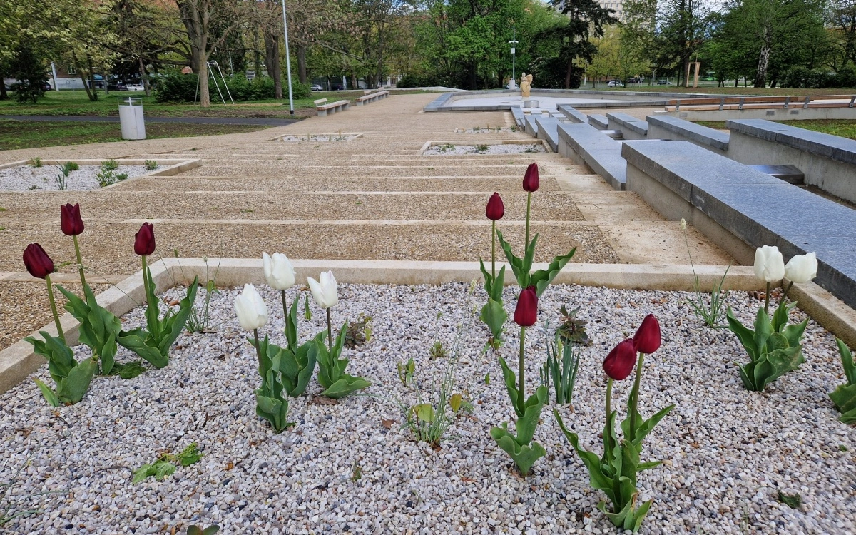 Práce v parku nyní finišují, brzy mají být napuštěny i vodní prvky. „Příští týden budeme školit obsluhu vodních prvků," doplnil vedoucí odboru investic mosteckého magistrátu František Jirásek. Nad rámec plánů nechalo město zvelebit i průduch u sportovní haly, čehož se chopil streetartový umělec Nikola Vavrous.